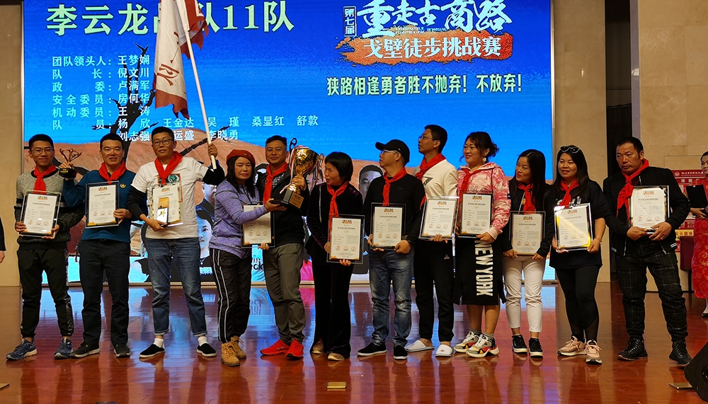 从这里开始(四次挑战大漠戈壁108公里)从这里开始(四次挑战大漠戈壁108公里)二年730天17520小时,徒步记忆! 2019年5月,一次邂逅,一次缘分,一次不经意的相遇,让我第一次走进了中沙户外的重走古商路之大漠戈壁108KM挑战活动,从恐惧!从期盼!从兴奋!从享受一路走来,从第一次50KM拉练,到启程敦煌,我在经历着从未走过的路,也在经历的过程中找自我,也在自我检讨中选择放下,在选择放下的过程中放空,一心走路,释放抱怨,找回自我!我觉得我有了再一次重生,懂得了放下,选择了包容!懂得了少抱怨,选择了正能量!(李云龙三队) 2019年10 月,带着5月的激情与喜爱,再一次趟走进敦煌戈壁,以一个队长的身份,带领一群熟悉且陌生的朋友,从提醒到一次又一次的解说,从争吵到一又一次的分享,从陌生到相互尊重的朋友,我在经历着烦躁,愤怒,不理解!我却在沉静中找到了突破口,我在反醒中寻求到了解脱,因为队友的不了解 ,一次又一次被挤兑,被斥骂,但我用安静与笑容稀释了面红耳赤!也在过程中我理解了看清一个人,看轻一个人的真实写照,表面的永远是肤浅的,也不能随意的去评价一个人的好坏,只是点与面的关系用怎样的心态去衡量,用心了,放下了,不带任何利益,谅解二字来得更加容易!(李云龙五队) 2020年6月,被人骂神经病却还是选择了第三次进入大漠,这一次真心没有准备,也没报名,用别人的名额去的,因为疫情,大家都走得艰难,只想出去喘口气,也知道只有在那四天三夜能找一份安静!喊着:狭路相逢勇者胜,不抛弃,不放弃!的口号,当前徐州商会队明目张胆的喊着要夺冠的宣言,一群不怕死的年轻人硬是走到了最前面!团结是多么的可怕!团队是多么的可怕!既然有了目标,竟然可以做到伤不下火线,内急可以憋着!最后反宣言当成了现实,让李云龙战队再一次站在了最高点!(李云龙十队) 2020年10月,众筹本是还人家名额,没有想再一次踏入敦煌,却鬼使神差的又走上了第四次征程,因为腰伤,因为公司运营问题,一次又一次的想放弃,却一次又一次的害怕失信于一帮队友,也因各方面预估的事情如愿妥当!去过三次,没有带队夺冠也许真是遗憾,但服从安排是我自始至终的标准,骂不还口,打不还手!用细心,互助,服从,理解 的心态帮助一群人,服务一群人!幸好,方法对了,有一群正能量的人,在最短时间里,我们超越了自我,用真正的团队精神征服了其它二十多个队,最终也自豪的站在了最高点!虽然 以往没有在冠军队,但是有过最大的努力,有过最出色的结果,冠军只有一个,没有冠军也一样优秀!所以,无论结果如何,至少没有失去什么,却是收获 满满,精神饱满! 重走古商路,人生不止步!的确!人生何谈止步,岁月静好,浅笑安然!虽终归有日落西山之日,但这一程要有更多有意义的故事填充!故事里有好多的人,有好多的事,有好多的风花雪月!易逝的青春有如花落,有多少人在青春的繁花里美丽一时,也有多少人在青春的岁月里不够完满,却有多少人,在青春流逝时,留下灿烂的过往!请容许我再犹豫一次,任性一次,虽然说过是最后一次踏足大漠,但是,如果。。。。。。或许。。。。留悬念! 走过大漠戈壁,都是姐妹兄弟!感谢你,感谢你们,曾与我美好相遇的你们,感谢你们曾与我许下那么美丽的誓言:走过大漠戈壁,都是姐妹兄弟!收获种种,兄弟姐妹犹重!感恩遇见,人生中的导师比比皆是!一路相随,人生有你,因性格不一,因时间,因家庭,因工作总有一些分离,但也会感恩那一刻的相遇!也许,哪一天还会重逢! 上面是霸气的营长王梦娴(曾经加了我微信,三年没聊过天,说删了1000人也没把我K掉,给足了我面子!哈哈。。。。) 2019年5月,李云龙三队(肖德送,李章,李婕杰,何争朝,高国文,李宝华,何满杰,颜秋兰,曾繁梯,孙华彬,李平永,卢满军,涂兴晓,李文杰)。 2019年5月,通过四天三夜,更加深刻,更加亲近的认识李云龙一队,李云龙二队的兄弟姐妹们(张立品,刘大建,刘华,肖杰,黄利乾,杨文涛,谭小文,江学虎,黄青松,杜文田,李华欣,胡光荣,肖燕玲,黄荣华,卢自发,王金华,林湘萍,郭春梅,杨馨雯,张良华,曾国良,阳四海,雷鸣,郭峰,张官福,王存富,陈福权,邓蓉。。。) 2019年10月,李云龙五队(海东,慧芬,龙丽娟,曾兵,林文友,薛萍,黄祝利,李家莹,周新芳,刘娜,李梦,灵珑) 同行的还有威武霸气的李云龙四队(吴小群,刘春红,向恒林,朱立希,熊代勇,刘潮,林芬,谭菲,李咏梅,张勇) 2020年6月,我带领李云龙十队(张斌,谭小胖,王赞,田中华,袁芳,刘金玉,吴涛,肖燕玲,邱美华,毛火球) 同行的豪爽的李云龙八队(吕乐宝,郝成威,魏群峰,周璇,邱辉,杨馨雯,李旭宏,龙兰,向欣,曹汝芬) 同行的伟大的冠军团队李云龙六队(刘习军,曾宪金,翁长春,杜红梅,李可柔,刘奎,张樵夫,肖庆钧,童涛,况万铭,叶星,谢宏强 同行的潜力无限的李云龙七队(陈为星,曾红艳,罗毅,任慧超,王美祥,阳四海,陈福娟,何新文,杨立聪,曾峰) 同行的美女成群的李云龙九队,名字有好多叫不出来,脸丢大的,有(老祝,刘大建,李红艳,杨清,向志雄,吴长娟,严爱华,吕建林,灿灿。。。。) 2010年10月,李云龙11队,伟大的冠军队,我们的队友(房何华,舒款,王涛,吴谨,李春雷,刘志强,桑显红,倪文川,李晓勇,王金达) 第七届同行队友还有所向披靡实力足的李云龙12队和玩爽了的李云龙13队,队友们有李战功,卢阳,刘华,韩妹妹,袁建平,刘富强,王颜霞,彭柏云,孙标,孙国海,龙纯,刘建军,王鸿,李仲清,汪长浩,童艳,任慧超,雷雯嘉,毛志